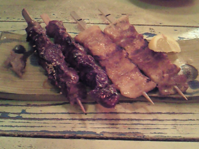 ↓(左)幻の黒豚 あぐー豚のレバー串 ¥250-