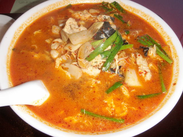 スープは真っ赤です。