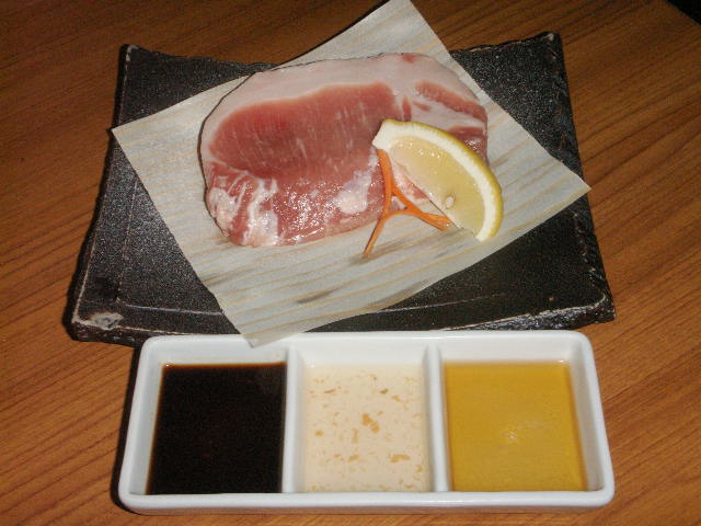 といわれて出てきたタレが右からゴマ油塩・真ん中が梅塩・左が山葵醤油でした。