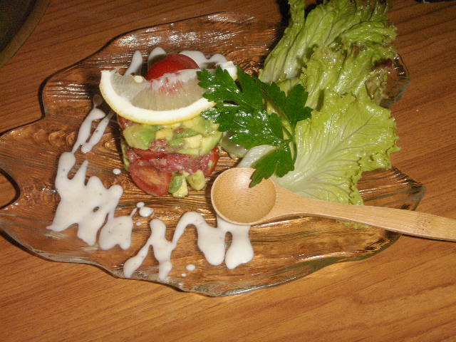 ↓アボカドとユッケのサラダ