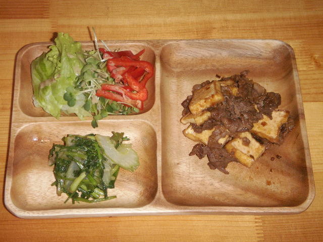 右が牛肉と厚揚げの炒め物。