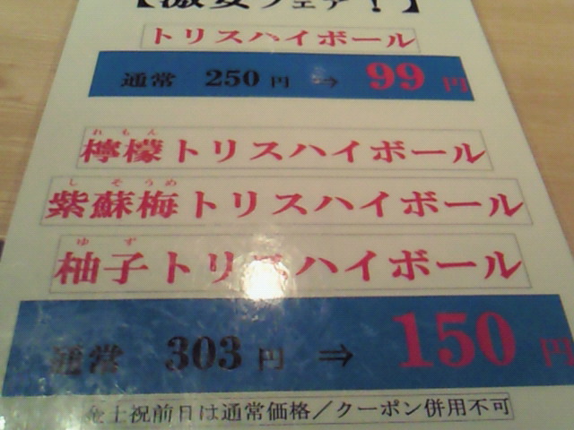 トリスハイボールが通常250円が→99円に!