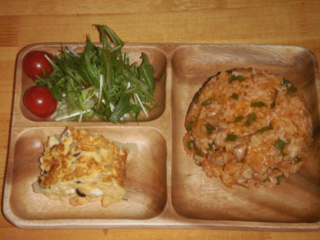 左奥、水菜とミニトマトのサラダ。