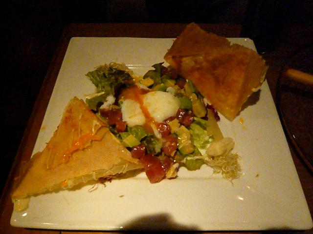 外のぱりぱりを崩すと中から温玉が付きのサラダが。