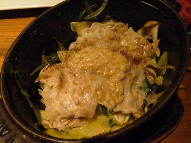 春キャベツやら野菜と豚肉の蒸し焼きな感じ?