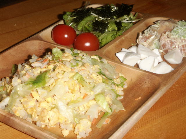 手前が鮭フレークとレタスのチャーハン。