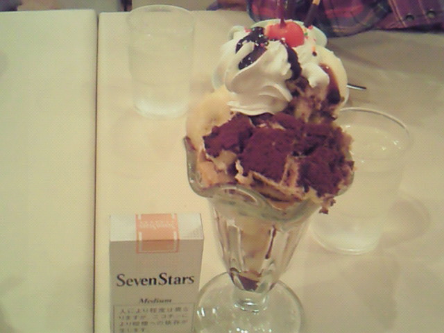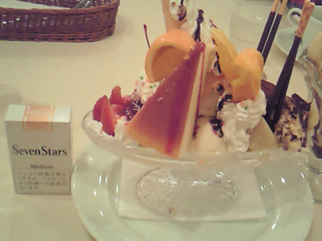 レアチーズケーキとチョコレートケーキとアイス2段かな?