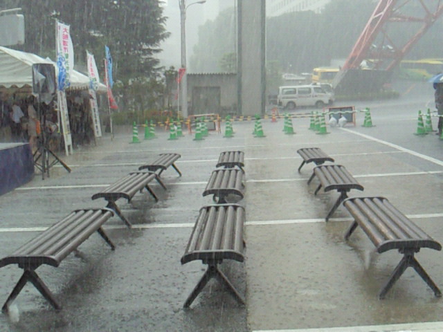 買い終わったあと、食べようとしたら、ものすごい通り雨。