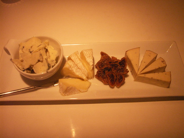 左からブルーチーズ・カマンベールチーズ・イチジクのドライフルーツ・スモークチーズ