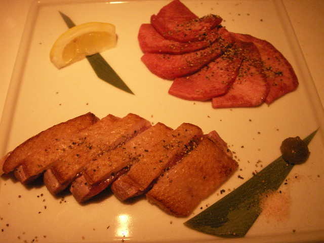 ↓ 牛タン ¥990- と 合鴨ステーキ ¥980-