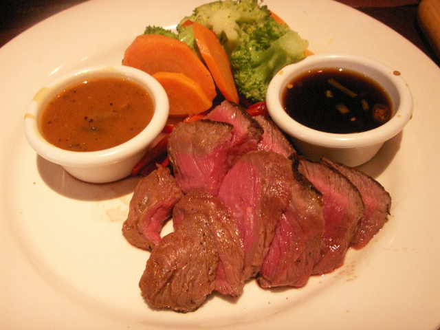 サーロインステーキも柔らかく、これは塩か醤油ソースで頂きました。
